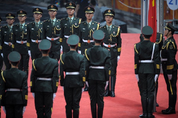 9月17日,北京2008年殘奧會閉幕式在國家體育場即將舉行。這是閉幕式前升旗手準備升旗。 新華社記者劉大偉攝
