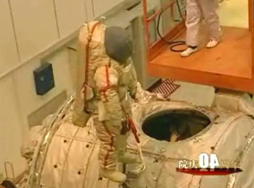 中國日報網環球在線消息:中國專門研制衛星飛船的航天五院院慶40周年宣傳片曝光國產“神七”出艙航天服及氣閘艙。(來源:人民網 編輯:歐葉)