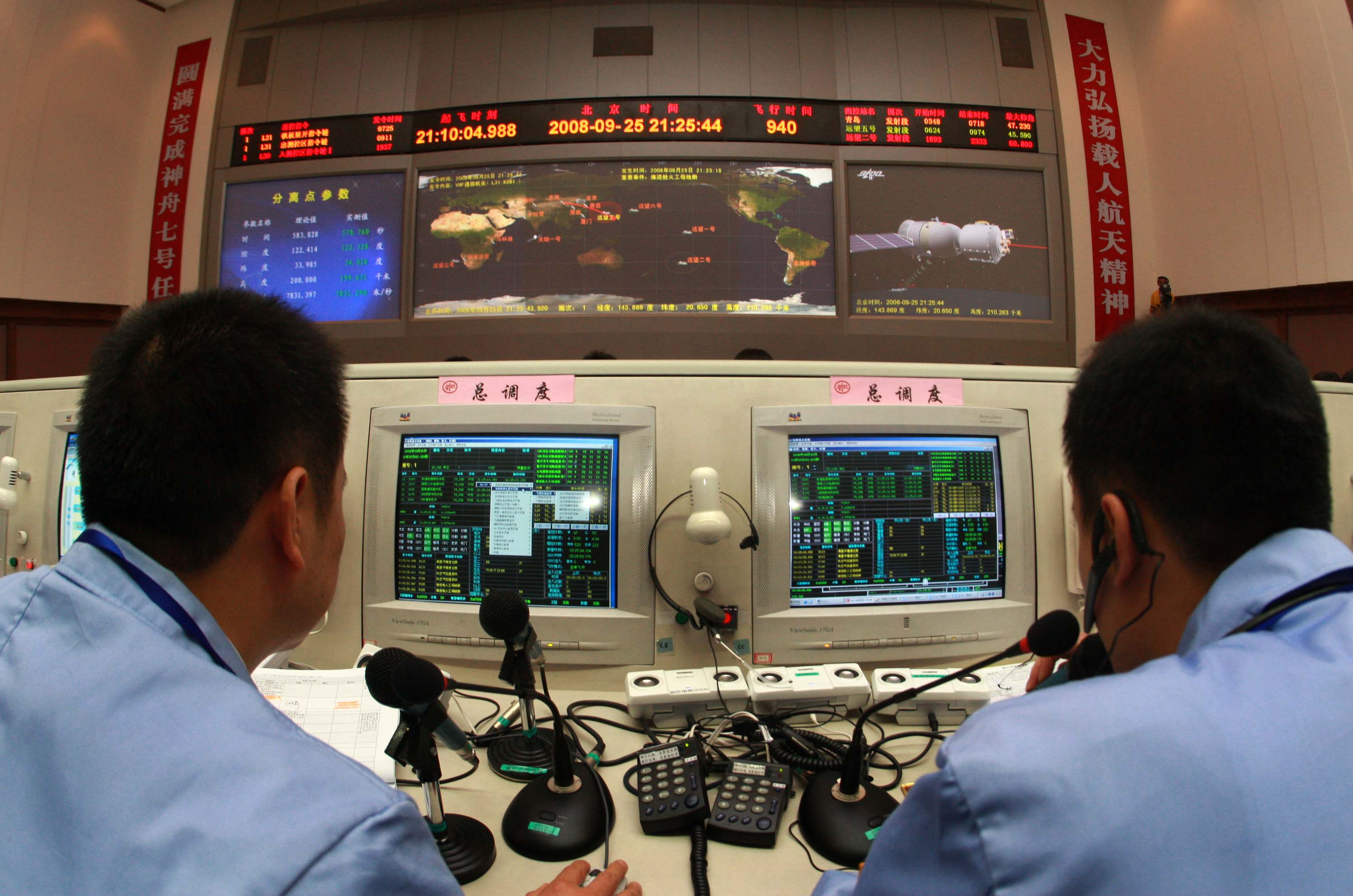 9月25日晚,北京航天飛行控制中心的忙碌景象。當日21時10分,長征二號F型運載火箭點火,神舟七號飛船在酒泉衛星發射中心升空。