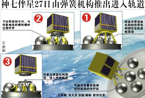 中國日報網環球在線消息:神舟七號釋放伴飛小衛星。