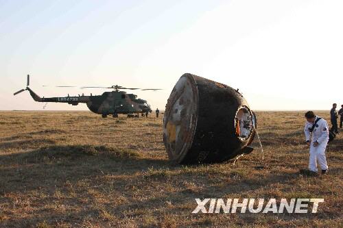 9月28日,神七返回艙成功著陸。 新華社記者王建民攝