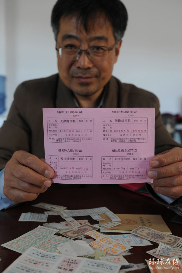 天津檔案館曬“寶物”見證改革開放 10月24日,在天津檔案館征集部,王樹森副主任展示80年代初的“縫紉機購買證”。 為紀念改革開放30年,天津檔案館近日整理并向社會征集改革開放以來人民居家生活的老物件、有價值的手稿、票據(jù)、老照片等,透過數(shù)百件物件,人們可略見30年天津城市的滄桑巨變。 新華社記者馬平攝