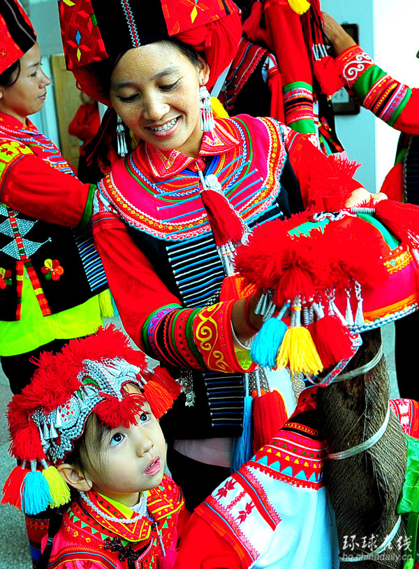 個舊市金易民族民間藝術傳習展示館里,一位彝族小女孩好奇地看著與她服飾相同的模特(10月25日攝)。 改革開放30年,紅河哈尼族彝族自治州個舊市采取多種形式展示當地少數民族民間傳統服飾工藝發展、演化歷程,并借此良機傳習精湛多彩的祖傳技藝,深得城鄉群眾青睞。 新華社記者 陳海寧攝