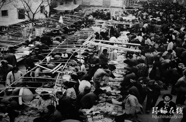 這是1982年9月開業的義烏第一代小商品市場的資料照片。1984年,這個市場的成交額達2321萬元,商品主要銷往義烏周邊縣市。 30年前,義烏還是浙江中部一個貧困的農業小縣,人多地少,資源貧乏。這里的人自古就有經商的習慣,“雞毛換糖”是義烏貨郎們傳統的謀生手段。