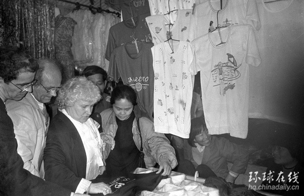 外國客商在義烏中國小商品城選購服裝(攝于1993年)。 30年前,義烏還是浙江中部一個貧困的農業小縣,人多地少,資源貧乏。這里的人自古就有經商的習慣,“雞毛換糖”是義烏貨郎們傳統的謀生手段。