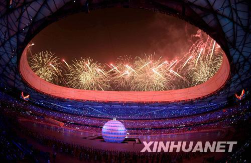 8月8日晚8時(shí),第29屆夏季奧林匹克運(yùn)動(dòng)會(huì)在國(guó)家體育場(chǎng)——“鳥巢”隆重開幕。這是開幕式上燃放的焰花。新華社記者姚大偉攝