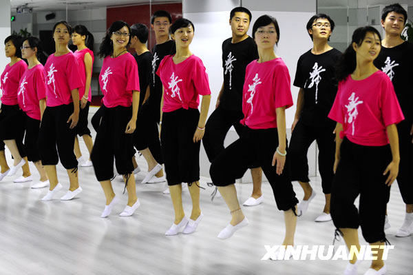 招商銀行電話銀行中心的年輕人在業(yè)余時(shí)間學(xué)習(xí)舞蹈(10月13日攝)。新華社記者任勇攝