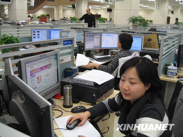 新華社攝影部的圖片編輯在用電腦編輯稿件(2008年11月26日攝)。新華社記者呂淑梅攝