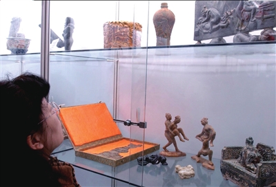 2003年10月27日,參觀者在性文化實物展覽上參觀。新華社特供本報圖片