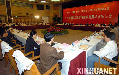 這是2005年9月27日,全國人大法律委、財經委和常委會法工委就修改個人所得稅法,聯合舉行了全國人大歷史上第一次立法聽證會。新華社發