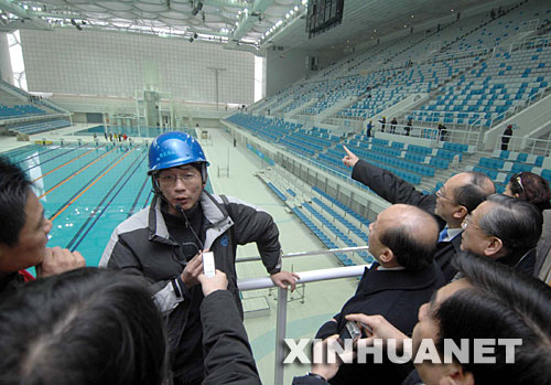 這是2008年1月23日,國家游泳中心總經理趙志雄向參加北京市政協十一屆一次會議的港澳委員們介紹國家游泳中心――“水立方”的特點。新華社發