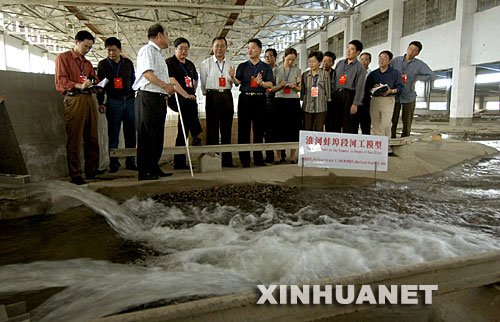 這是2005年5月15日,安徽省蚌埠市政協委員在淮河水利工程實驗室觀看水利工程模型實驗,為淮河綜合治理獻計獻策。新華社發