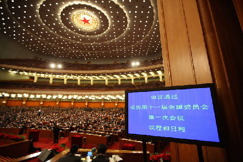 中國(guó)日?qǐng)?bào)網(wǎng)站環(huán)球在線消息:3月2日,全國(guó)政協(xié)十一屆一次會(huì)議預(yù)備會(huì)議在北京人民大會(huì)堂舉行。會(huì)議由賈慶林主持。(圖片來源:新華社)