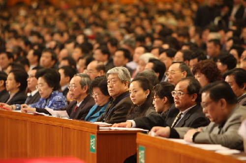 中國日報網站環球在線消息:3月3日,中國人民政治協商會議第十一屆全國委員會第一次會議在北京人民大會堂開幕。這是委員們在認真聽會。