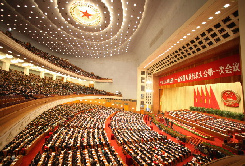 中國日報網站環球在線消息:2008年3月5日 十一屆全國人大一次會議在京開幕 3月5日,第十一屆全國人民代表大會第一次會議在北京人民大會堂開幕。
