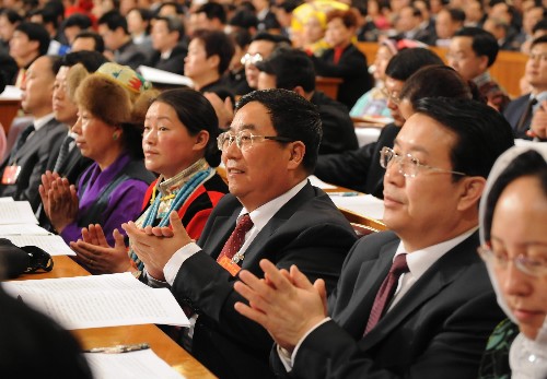 3月5日,第十一屆全國人民代表大會第一次會議在北京人民大會堂開幕。這是代表在熱烈鼓掌。 新華社記者李學仁攝