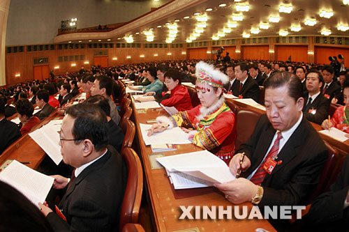 3月5日,第十一屆全國人民代表大會第一次會議在北京人民大會堂開幕。這是代表在認真聽會。 新華社記者 鞠鵬 攝