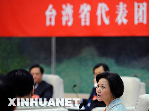 3月10日,出席十一屆全國人大一次會議的臺灣省代表團審議最高人民法院工作報告和最高人民檢察院工作報告。這是全國人大代表陳云英在會上發言。 新華社記者李濤攝