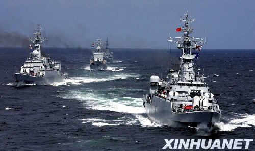 這是2005年9月25日,海軍艦艇部隊油料裝備檢驗性演習在東海某海域拉開帷幕,聯(lián)合編隊在東海某海域航行。新華社發(fā)