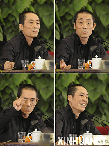 3月12日,全國政協十一屆一次會議在北京人民大會堂舉行記者招待會,主題是“政協委員談奧運”。這是張藝謀委員回答記者提問時的4個瞬間。新華社記者戴旭明攝