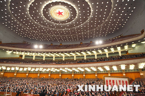 3月13日,全國政協十一屆一次會議在北京人民大會堂舉行第四次全體會議,選舉十一屆全國政協主席、副主席、秘書長和常務委員。這是大會會場。新華社記者蘭紅光攝
