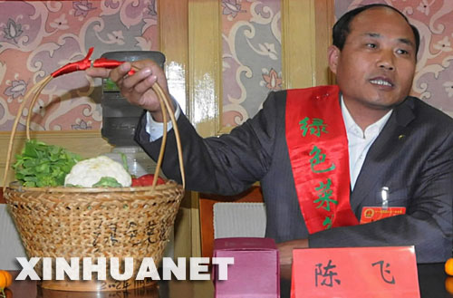 中國日報網站環球在線消息:一個竹籃子,里面放著幾個紅彤彤的西紅柿、一根綠油油的黃瓜和其他一些有機蔬菜。這是全國人大代表、浙江省永嘉縣渠口鄉珠岸村農民陳飛給中國政法大學學生講課時帶來的“教具”。