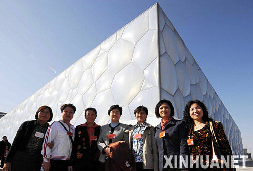 當天是十一屆全國人大一次會議大會休息日,部分全國人大代表來到北京奧運場館國家體育場“鳥巢”和國家游泳中心“水立方”參觀。新華社記者楊宗友攝