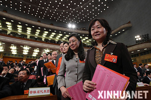 3月15日,十一屆全國(guó)人大一次會(huì)議在北京人民大會(huì)堂舉行第五次全體會(huì)議,選舉第十一屆全國(guó)人民代表大會(huì)常務(wù)委員會(huì)委員長(zhǎng)、副委員長(zhǎng)、秘書(shū)長(zhǎng);選舉第十一屆全國(guó)人民代表大會(huì)常務(wù)委員會(huì)委員;選舉中華人民共和國(guó)主席、副主席;選舉中華人民共和國(guó)中央軍事委員會(huì)主席。這是代表在排隊(duì)投票。新華社記者劉衛(wèi)兵攝