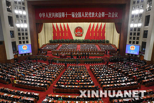 3月18日,第十一屆全國人民代表大會第一次會議在北京人民大會堂舉行閉幕會。 新華社記者王建華攝