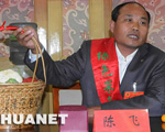 農(nóng)民代表陳飛提著竹籃給大學(xué)生上“環(huán)保課”
