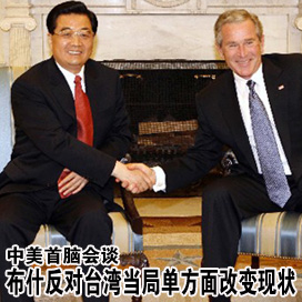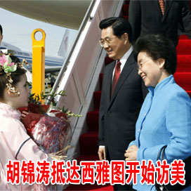 應(yīng)美國總統(tǒng)布什的邀請,國家主席胡錦濤18日抵達(dá)美國華盛頓州西雅圖市,開始對美國進(jìn)行為期4天的國事訪問。 [詳細(xì)]