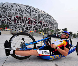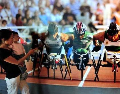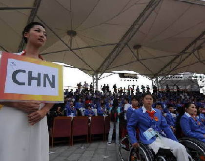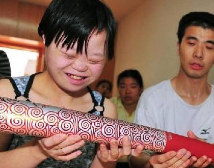 殘奧圣火在青島傳遞 姜馨田表演手語詩
