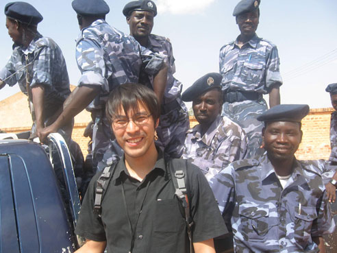 6月9日,達爾富爾,中國日報記者蘇強與非盟維和部隊。[中國日報記者蘇強 攝]