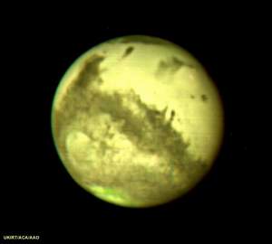 火星是唯一能用望遠鏡看得很清楚的類地行星。通過望遠鏡,火星看起來像個橙色的球,隨著季節(jié)變化,南北兩極會出現(xiàn)白色極冠,在火星表面上能看到一些明暗交替、時而改變形狀的區(qū)域。空間探測顯示,火星上至今仍保留著大洪水沖刷的痕跡??茖W家推測,火星曾比現(xiàn)在更溫暖潮濕,可能出現(xiàn)過生命。