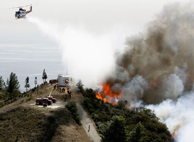 加州州長施瓦辛格22日已宣布從圣巴巴拉至美墨邊境以北的7個地區(qū)進(jìn)入緊急狀態(tài),但多處火災(zāi)讓消防部門疲于奔命。施瓦辛格說:“對加州來說,這是悲劇性的時期。”