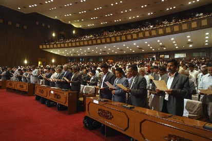 尼泊爾制憲會議共有601個席位。由于各種原因,27日參加宣誓就職儀式的代表只有575名,其他26個席位的人選將于晚些時候確定。在這個多民族國家,宣誓儀式也很有民族特色。在宣誓時,不少人身著傳統服裝,講各自的民族語言。