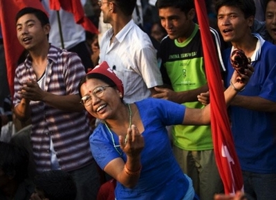 尼泊爾民眾跳舞慶祝共和