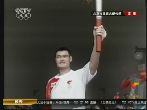 圖:“小巨人”姚明北京傳遞祥云火炬