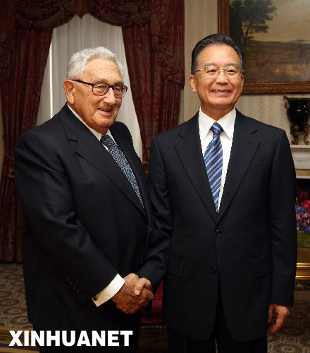 9月23日,中國國務院總理溫家寶在美國紐約會見美國前國務卿基辛格。新華社記者姚大偉攝