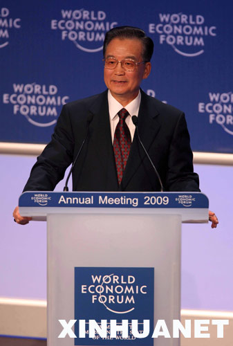 1月28日,中國(guó)國(guó)務(wù)院總理溫家寶在瑞士達(dá)沃斯世界經(jīng)濟(jì)論壇2009年年會(huì)上發(fā)表特別致辭。