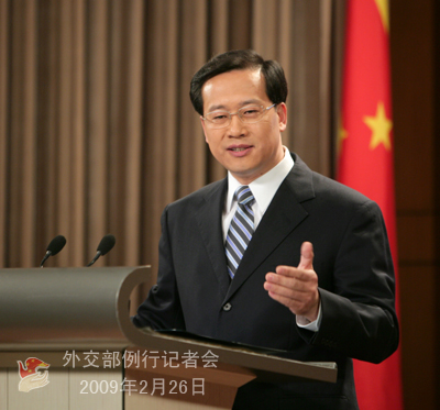 中國日報網(wǎng)環(huán)球在線消息:2009年2月26日,外交部發(fā)言人馬朝旭舉行例行記者會,主要就中國與有關國家雙邊往來、美國務院發(fā)表國別人權報告等答記者問。