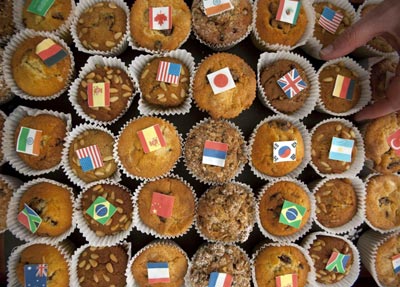 G20財長會議向媒體提供裝點了20國國旗的蛋糕