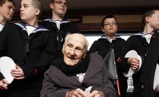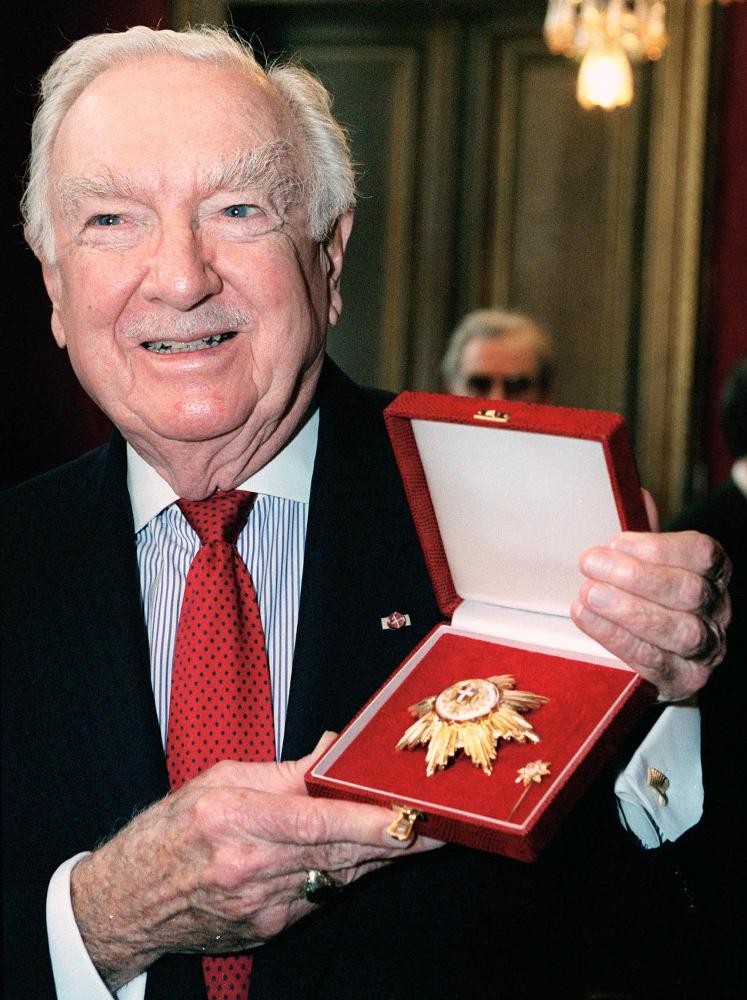 克朗凱特向人們展示獲得的榮譽(yù)勛章