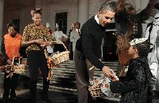中國日報(bào)網(wǎng)環(huán)球在線消息:10月31日萬圣節(jié)前夜,美國總統(tǒng)奧巴馬與妻子米歇爾在白宮與軍人的孩子以及白宮工作人員家庭等共度節(jié)日。