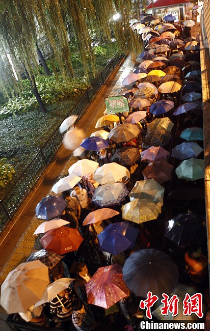 9月25日晚,即將進入“史上最長黃金周”的北京在9月的最后一周迎來了全年的“最堵周”。當日中午前后,北京大部出現(xiàn)降雨,局地雨量較大,能見度較低,加上節(jié)前交通流量增大,傍晚全市路網(wǎng)交通指數(shù)已經(jīng)達到8.7,處于嚴重擁堵狀態(tài)。圖為眾多市民打著雨傘在北京市大北窯公交站等待通往郊區(qū)的公交回家。中新社發(fā)張浩 攝