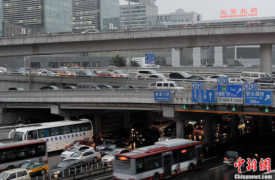 "最堵周"偏逢"高峰雨" 北京交通接受雙重考驗