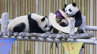 加拿大多倫多動物園10月13日舉辦活動,為在這里出生的龍鳳胎大熊貓“加盼盼”與“加悅悅”慶祝兩周歲生日。