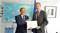 10月9日,中國駐歐盟使團團長張明大使向歐盟委員會禮賓司司長拉格朗維爾遞交國書副本。