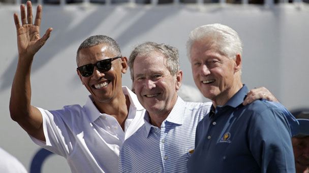 當(dāng)?shù)貢r(shí)間8月28日,2017年總統(tǒng)杯在美國(guó)新澤西州澤西城的自由國(guó)家高爾夫俱樂(lè)部舉行,為期4天。當(dāng)天,美國(guó)三位前總統(tǒng)比爾·克林頓、喬治·W·布什、巴拉克·奧巴馬現(xiàn)身球場(chǎng)觀看比賽。