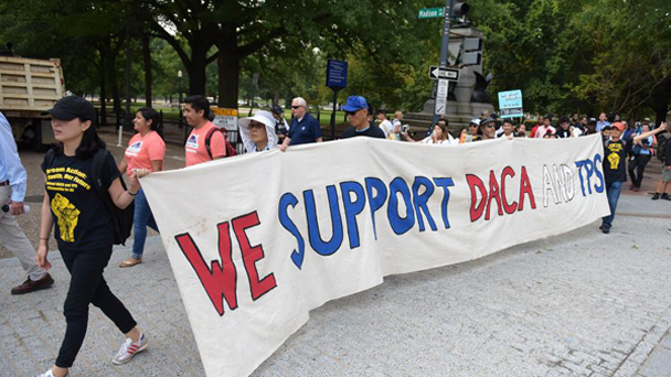 當地時間9月13日晚,美國國會民主黨高層發表聲明稱,他們已經與總統唐納德·特朗普達成一致,同意保護童年入境美國的非法移民免遭驅逐以及投入資金加強邊境安保。